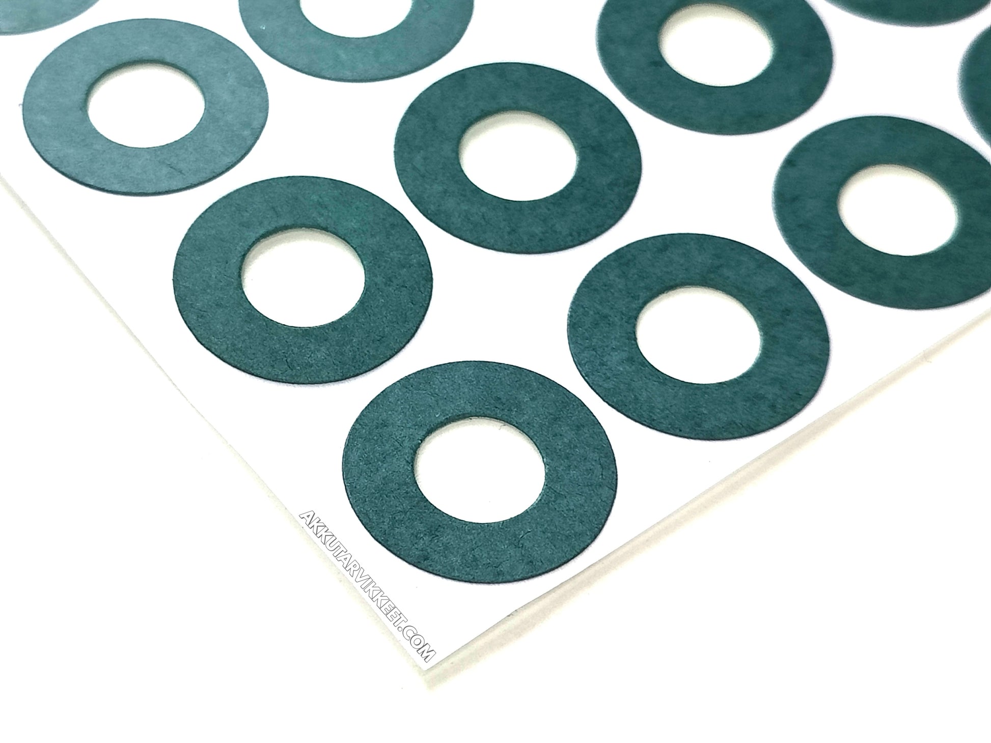 Insulator ring/sticker for the positive terminal of a 21700 cell. One sheet contains 60 rings with a 10mm opening or 50 with a 12mm opening.