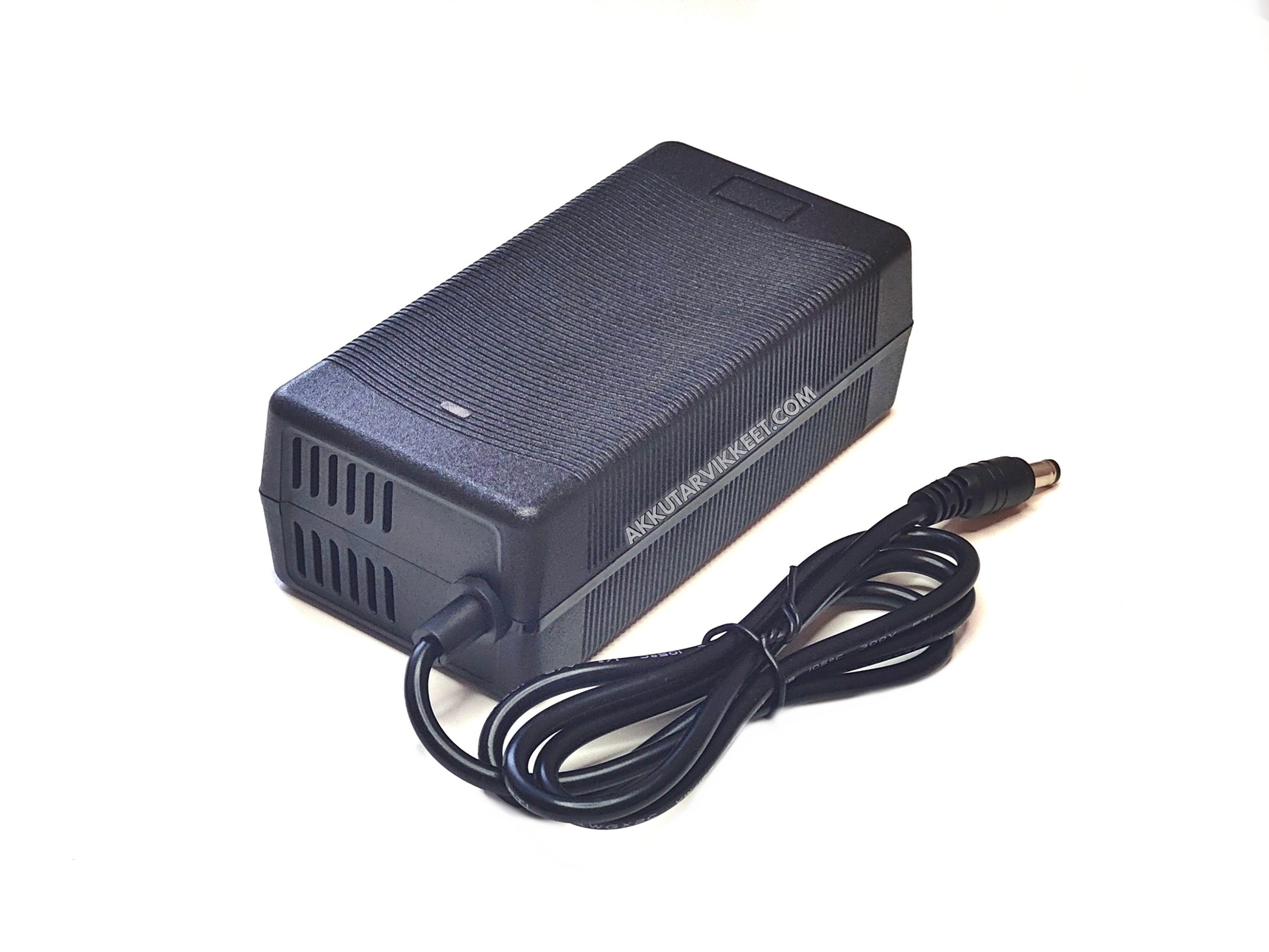 Akkulaturi 52V akuille. Sisältää sisäänrakennetun tuulettimen, joka pitää laturin lämpötilan alhaisena sekä LED-merkkivalon, joka kertoo kun akku on täynnä.