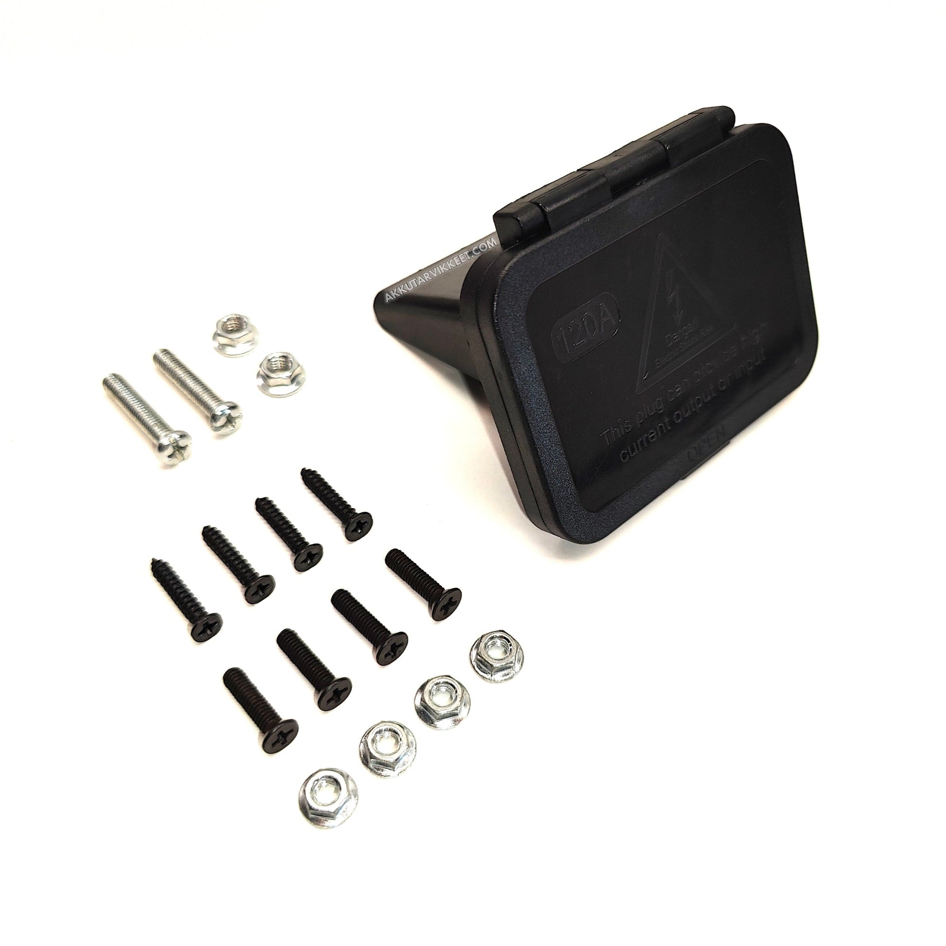Paneelikiinnike Anderson-liittimelle. Mukaan tulee sekä liittimeen että paneelikiinnikkeeseen tarvittavat ruuvit.