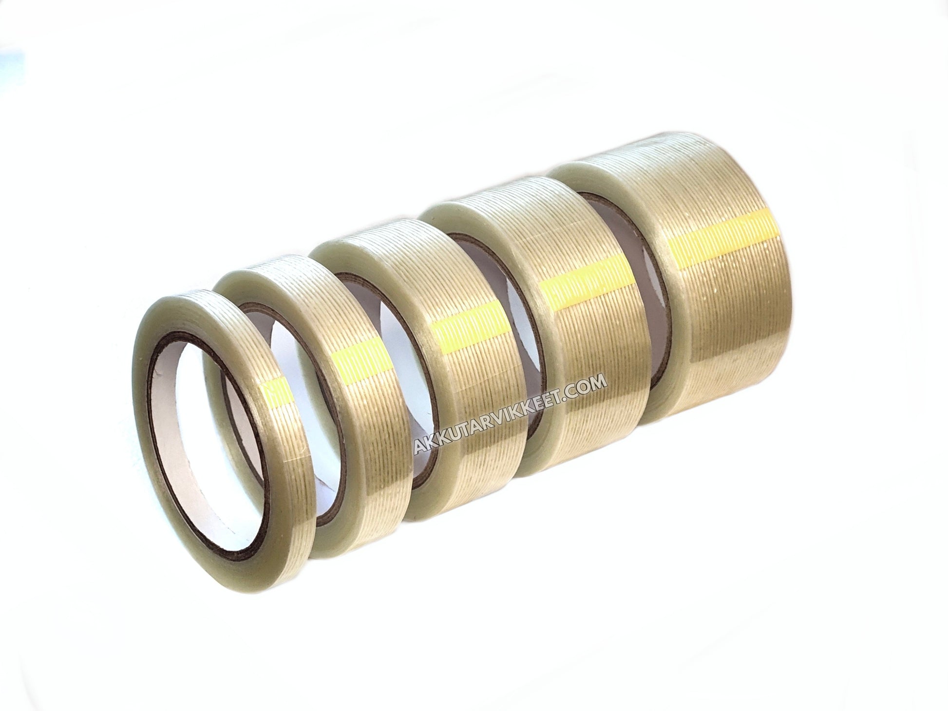 Lasikuituvahvistettu teippi akkujen eristämiseen.