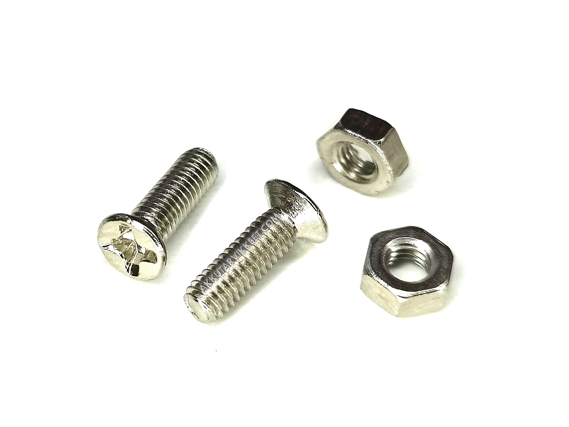 Kiinnitysruuvit sekä -mutterit XT90E-liittimeen. Ruuvin koko 2.5x9mm. Sisältää kaksi ruuvia ja kaksi mutteria.